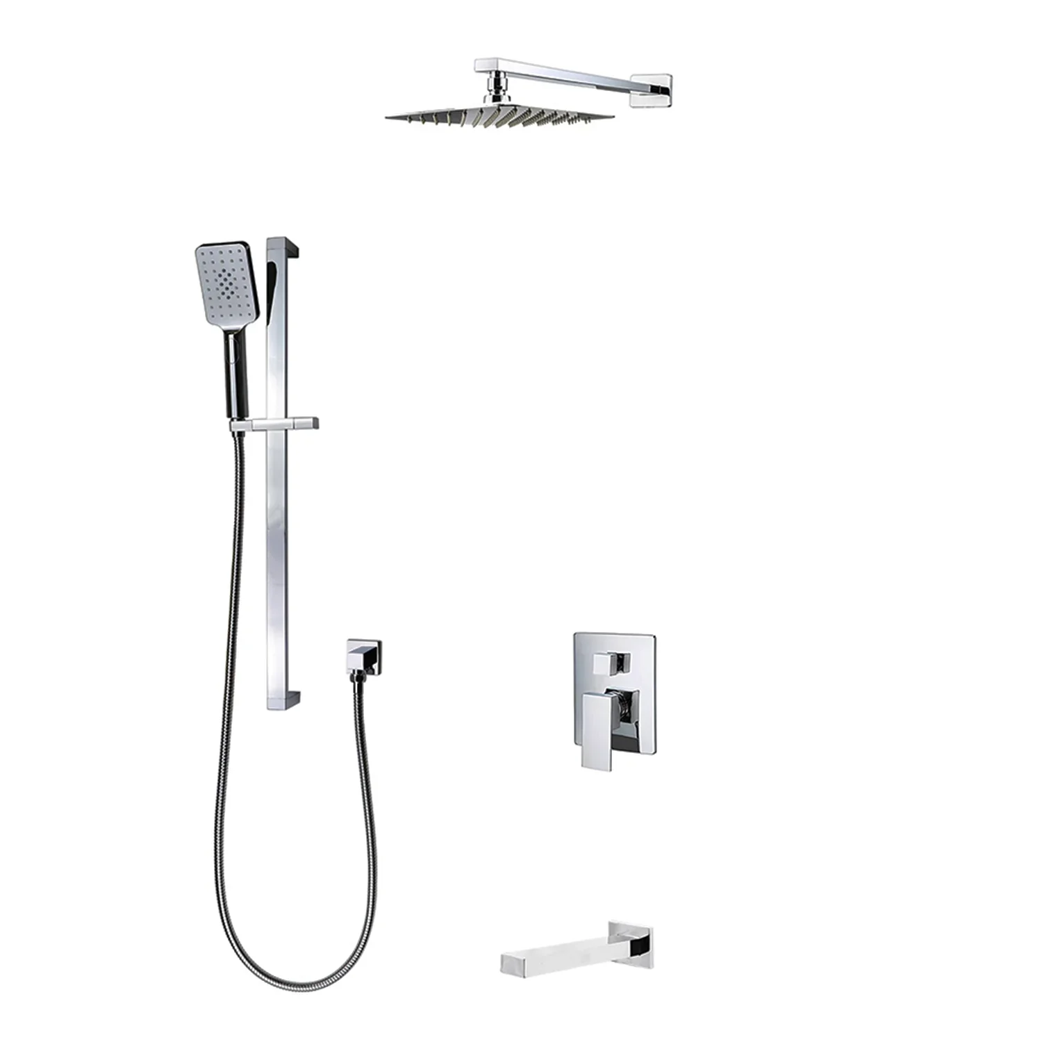 This shower system takes pure and simple geometric forms and composes them into an expression of modern luxury. Not only does it add contemporary style to your powder room ensemble with its clean-lined solid brass design and also adds unparalleled functionality. The rain head top is perfect for relaxation, while a handheld design lets you get the water right where you need it